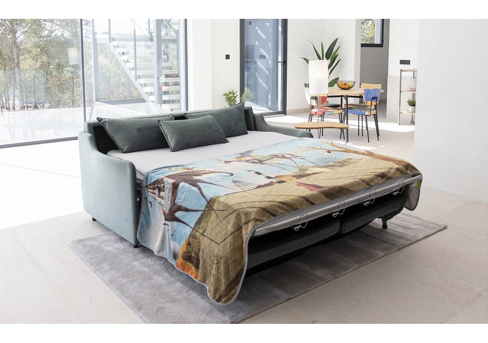 Discover the Apolo, a versatile and customisable sofa bed that adapts to your needs. It stands out for its great comfort both as a sofa and a bed, using an Italian opening mechanism that is easy to use and very lightweight, for effortless conversion. With an array of fabrics in ten arm options, you can design the perfect sofa for your space and style. Among them, there is a slim arm ideal for small spaces, as well as one with a built-in melamine table that functions as a practical bedside table. Take advantage of the multiple customisation possibilities offered by the Apolo and create the perfect space to receive guests or enjoy moments of relaxation.