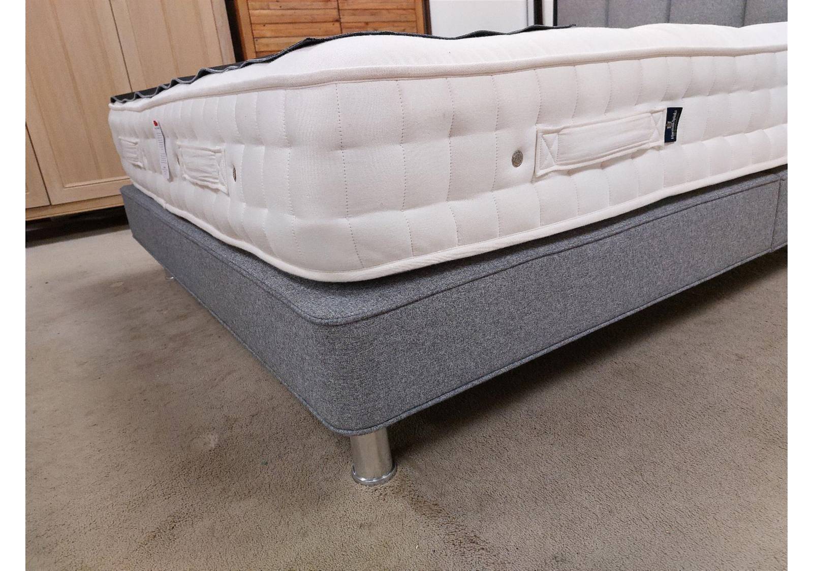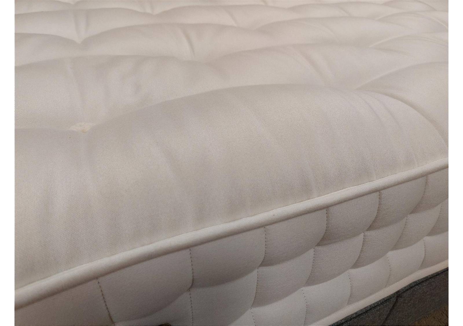 The Gardenia mattress features Cortec Quad pocket springs, HD 4000 micro springs, British wool and viscose blend, natural wool and hemp blend, natural cotton and hemp blend. With layers of blended British wool and viscose, home-grown hemp and crisp cooling cotton, this mattress has 8750 innovative springs, including 100percent recyclable advanced Cortec Quad pocket springs and pressure relieving HD 4000 micro springs. With an in-house woven FR chemical free mattress cover and two rows of hand side stitching, this Seasonal Turn mattress has a warming wool winter side and cooling cotton summer side.
