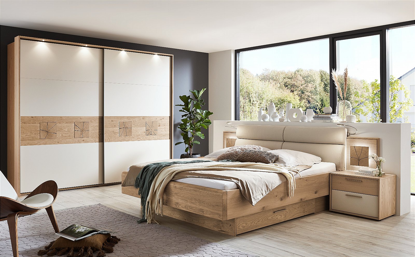 This stunning bedroom range combines natural wood veneer with light lacquer for a contemporary finish. Its stand-out feature is the cracked wood panels, giving this range a unique finish whilst further harmonising the wood and lacquer combination. The high-quality craftmanship is exemplified by the sleek shaping that is evident across the selection of wardrobes, beds and chests. These are all available in a wide range of sizes and modular options, allowing you to choose what best suits your space and needs. A great addition to the more modern bedroom.