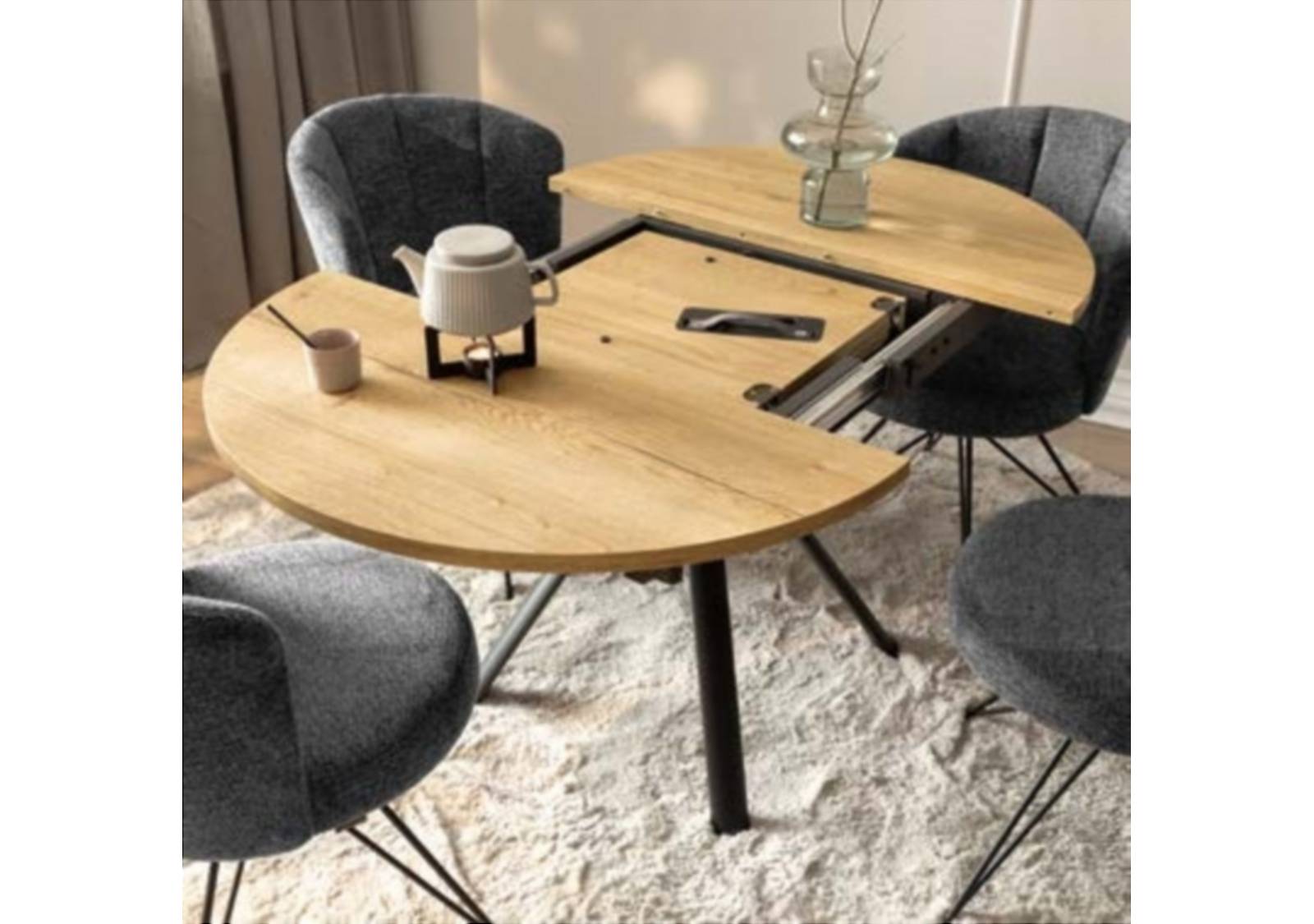 It is a master of functionality for compact living. Many models feature a practical and easy-to-use folding leaf extension system.