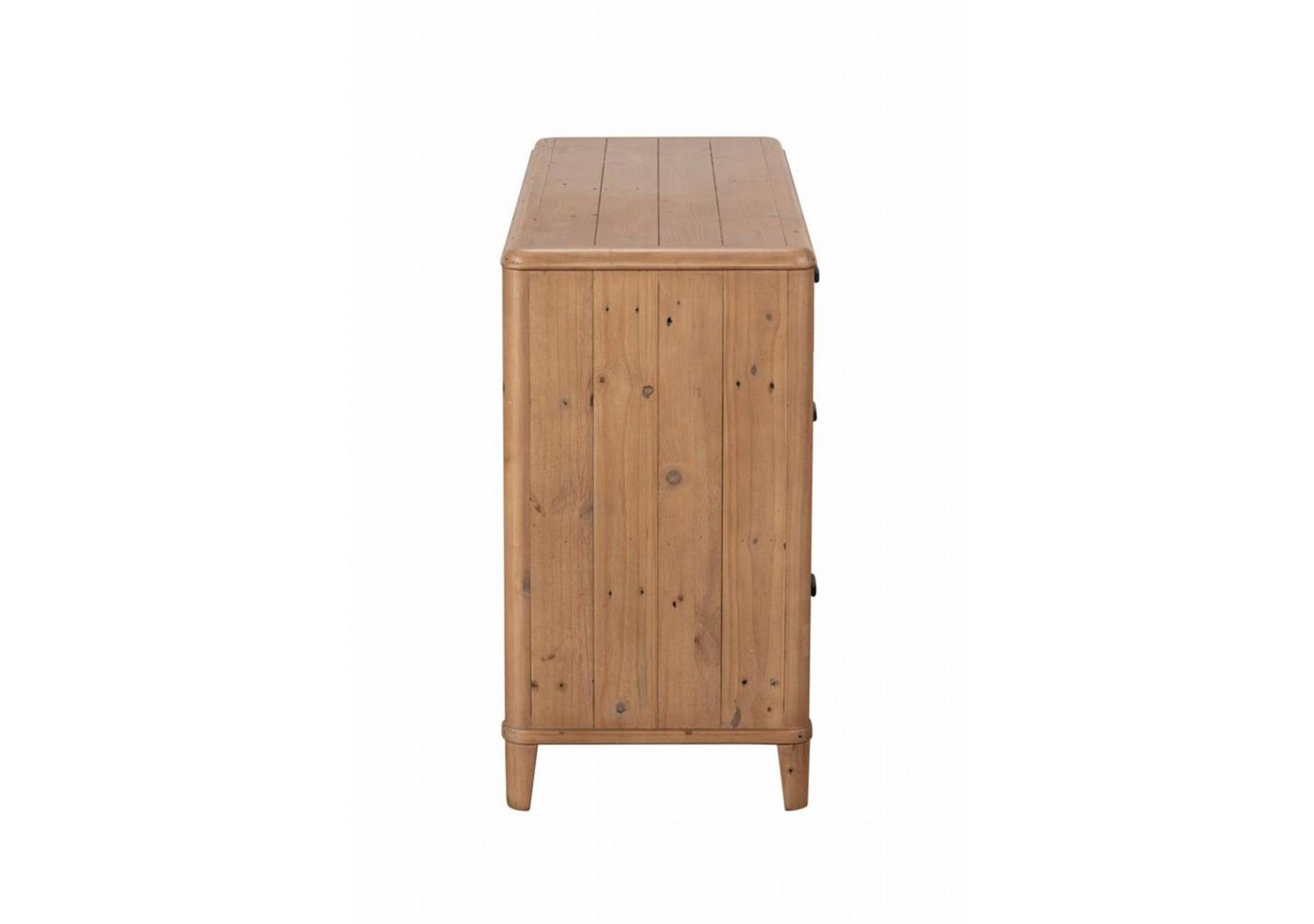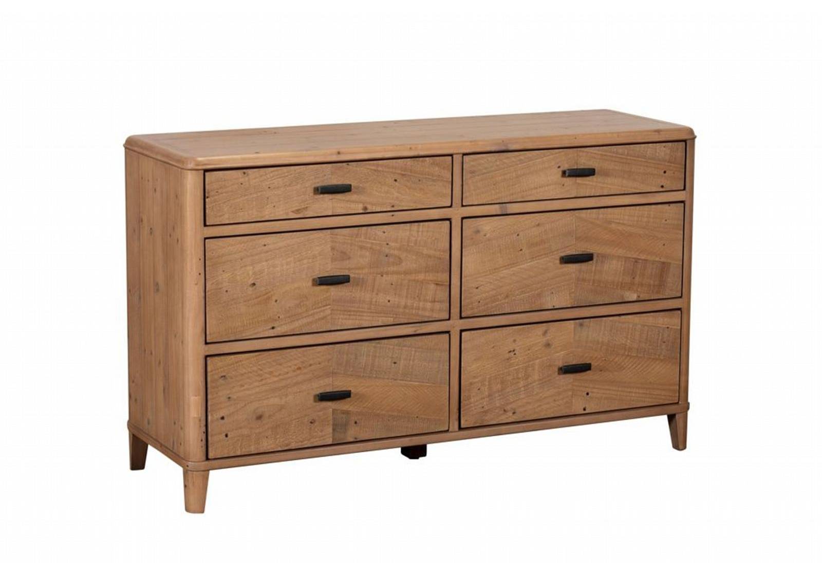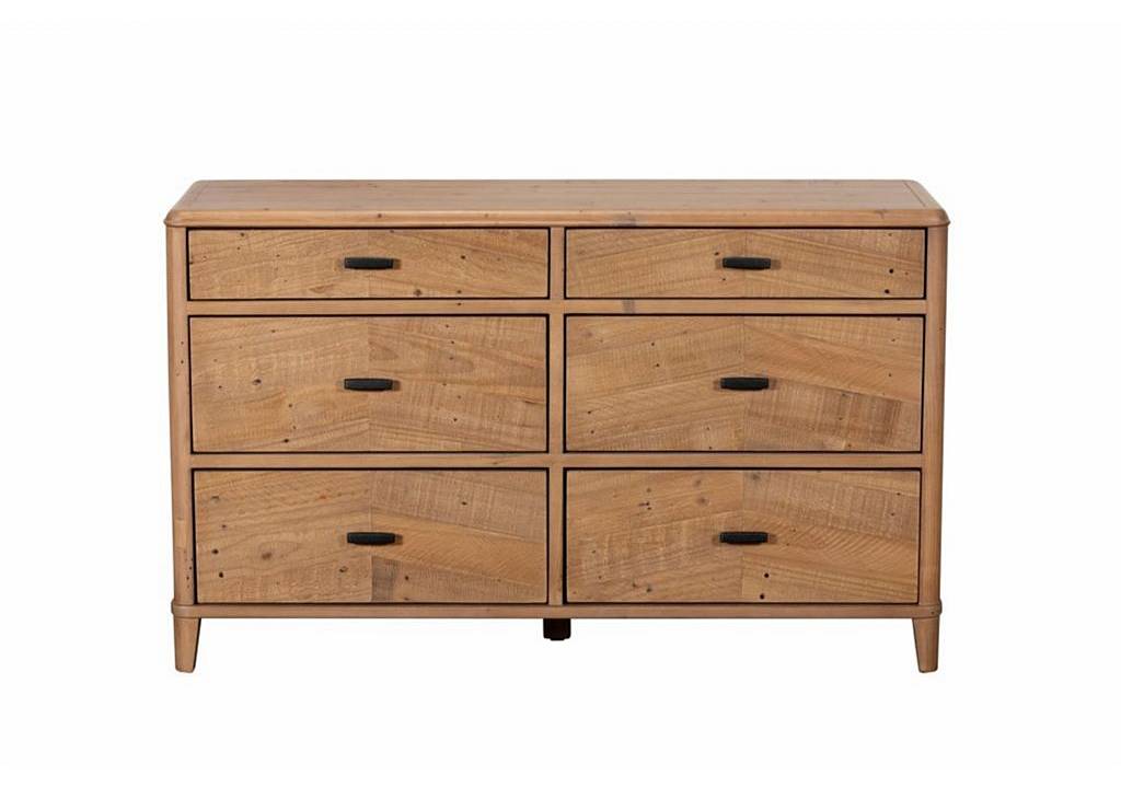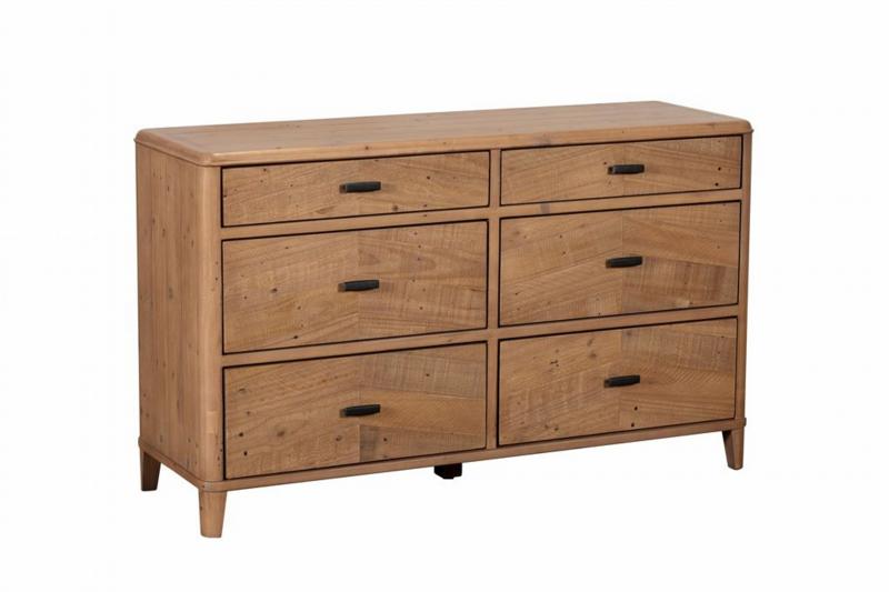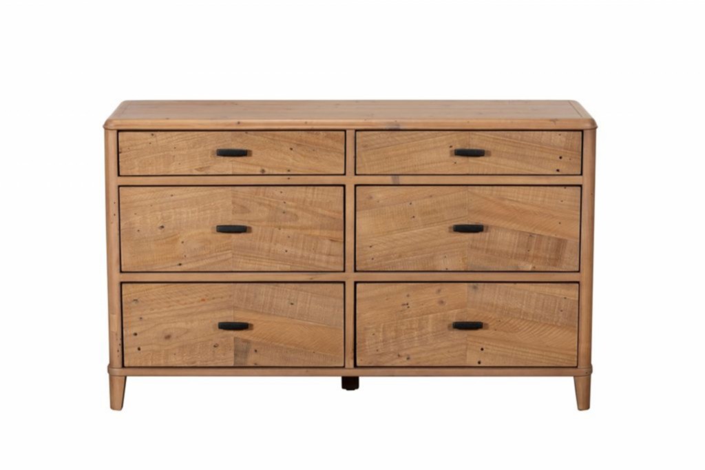 This gorgeous chest exudes character with its unique chevron design that is hand-crafted from 100% reclaimed FSC timber. The variations in the natural patterns and grains of the wood combined with the sweeping curved edges and metal handles create a striking finish that makes it perfect for the modern home. This wide chest design offers ample storage space with the six drawers, helping you to keep your bedroom organised. With both sustainability and style in mind, this is a chest that is sure to stand out.
