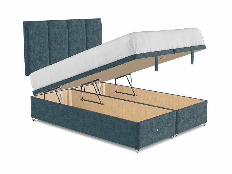 This gorgeous set is upholstered in the Tweed Dark Green fabric for a luxurious finish, whilst the vertical panels of the headboard create a striking look that makes it the perfect addition for the modern home. The deep divan base provides the ultimate storage solution. Simply lift up the top of the divan, which is hinged to the base, allowing you to use the entire divan base for storage. Hydraulic springs make it easy to lift up, even with the mattress in place, which provides an excellent solution for smaller bedrooms, as you do not need to allow room to pull out drawers.