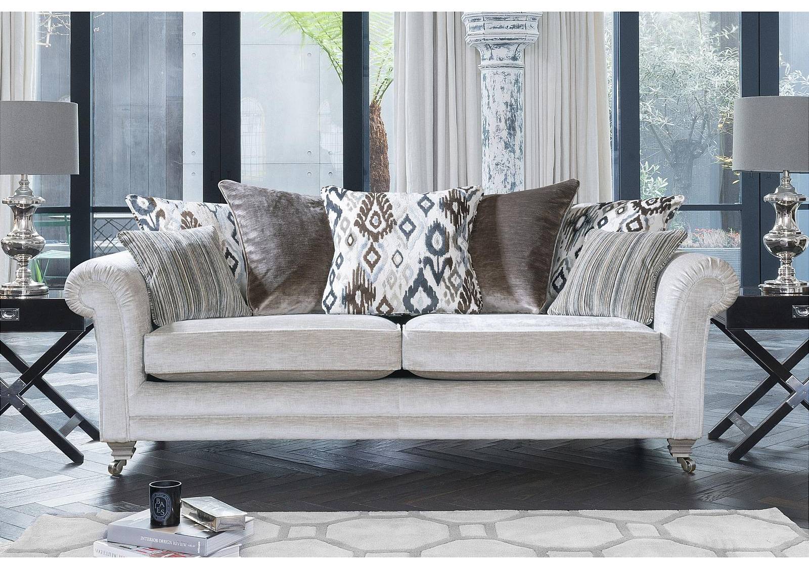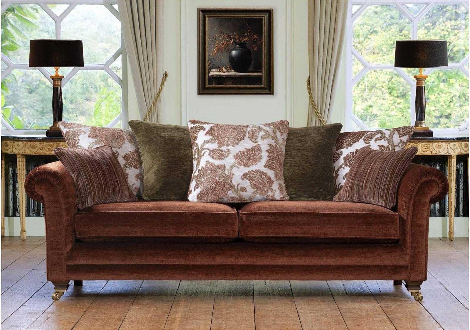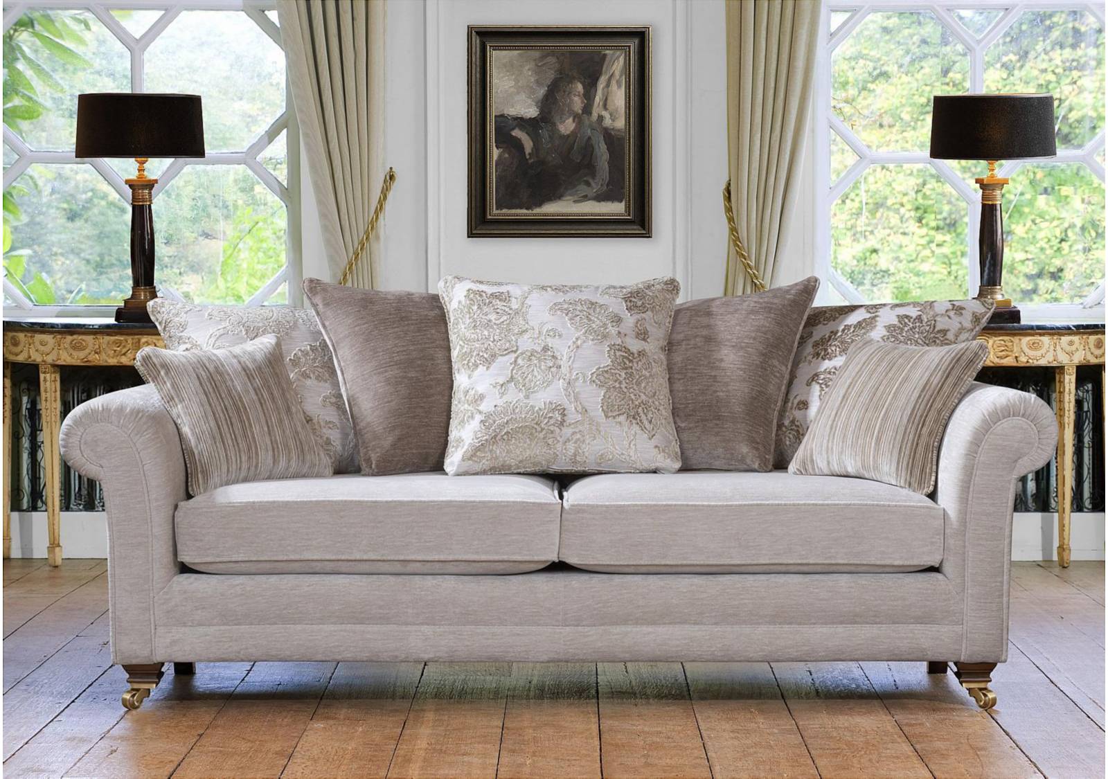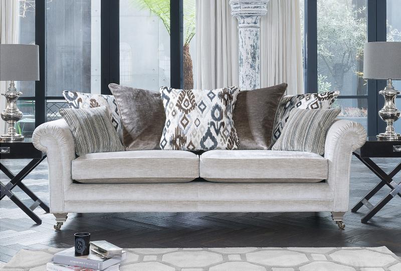 Timeless luxury meets modern elegance with this sofa collection. It features hand-pleated scroll arms, a choice of formal or scatter backs with feather and fibre filled cushions, as well as finely finished legs with brass cup castors. The wide range of fabrics further echo the sophisticated styling with jewel tones and jacquard designs, adding colour and warmth to any space. This collection is a classic designed to endure, combining craftmanship and style for years of refined comfort.
