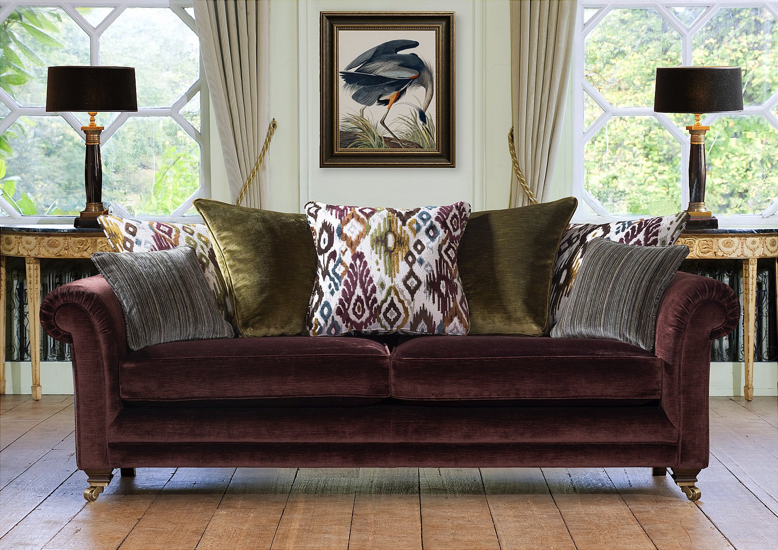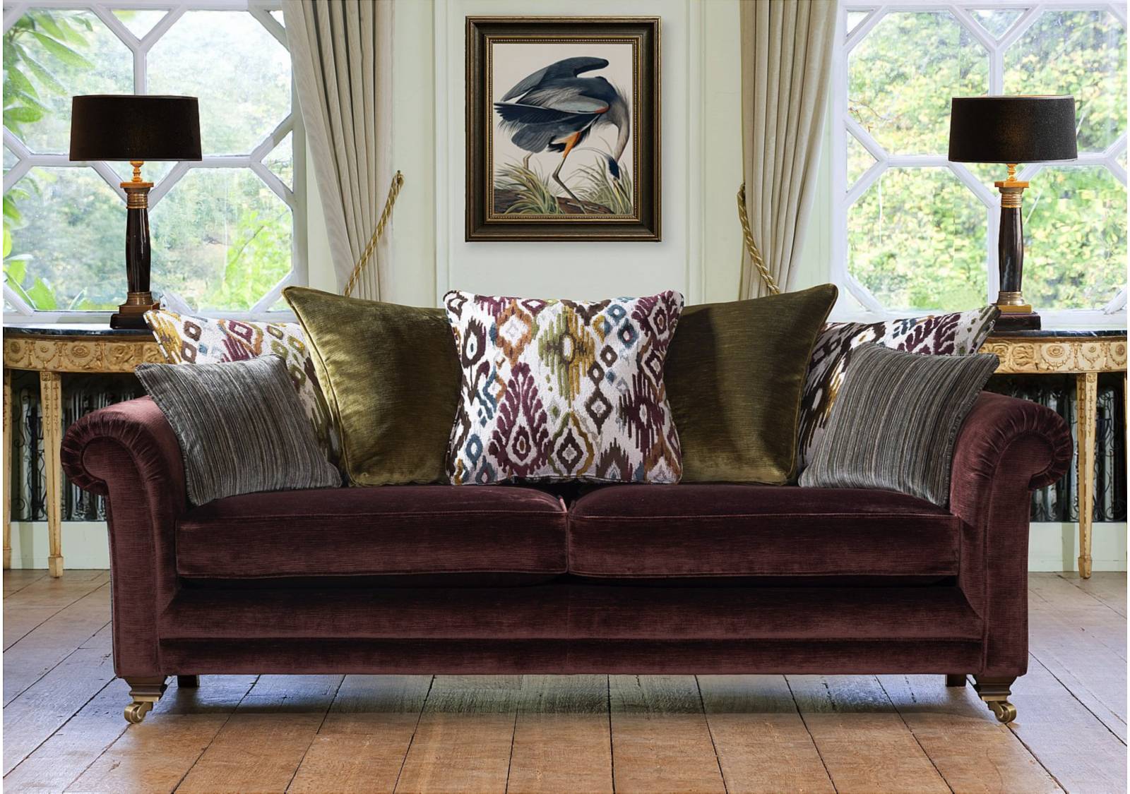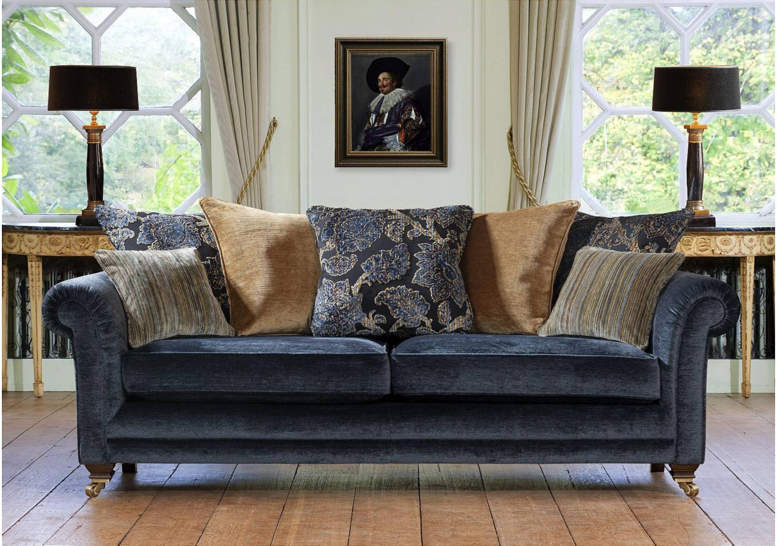 Timeless luxury meets modern elegance with this sofa collection. It features hand-pleated scroll arms, a choice of formal or scatter backs with feather and fibre filled cushions, as well as finely finished legs with brass cup castors. The wide range of fabrics further echo the sophisticated styling with jewel tones and jacquard designs, adding colour and warmth to any space. This collection is a classic designed to endure, combining craftmanship and style for years of refined comfort.
