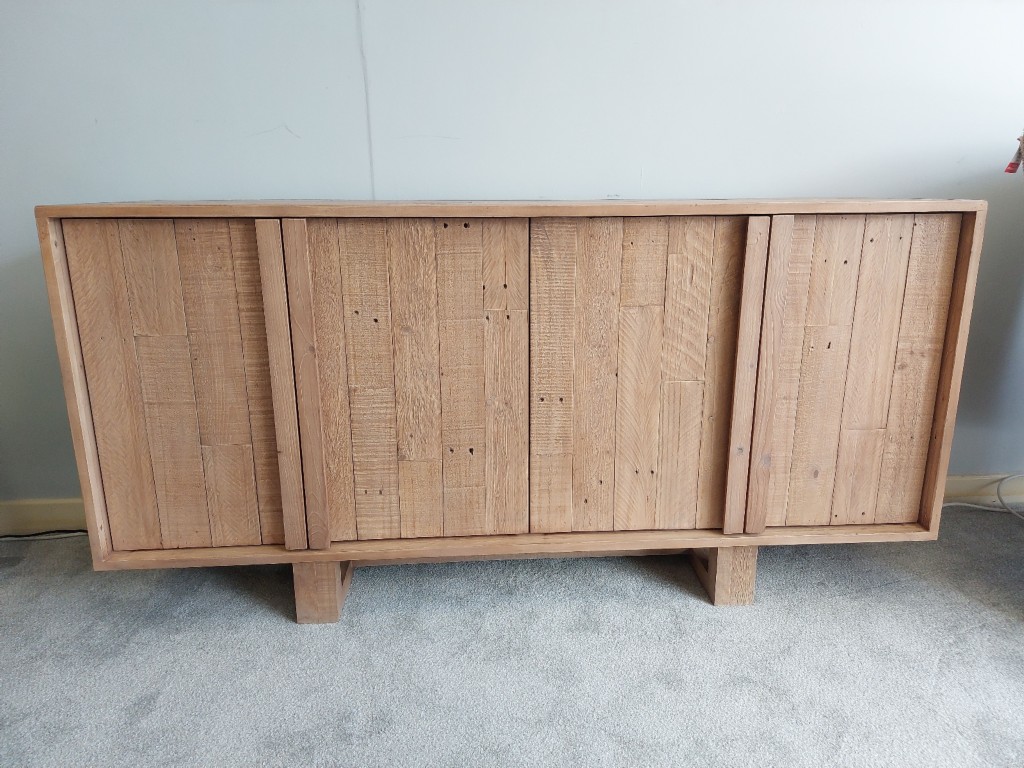 This gorgeous sideboard blends timeless design with eco-conscious craftsmanship for modern living. It is crafted from 100% reclaimed FSC-certified timbers, and the warm natural finish allows the stunning character of the wood grain to shine through. The four door design conceals two shelves, offering plenty of storage space to help you stay organised, but without compromising on style.